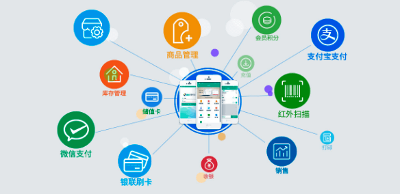 根据设备自带功能,可支持红外扫描、打印、银联刷卡、储值刷卡等功能,具备收银,商品管理,库存管理、会员卡积分等功能,降低商家成本。